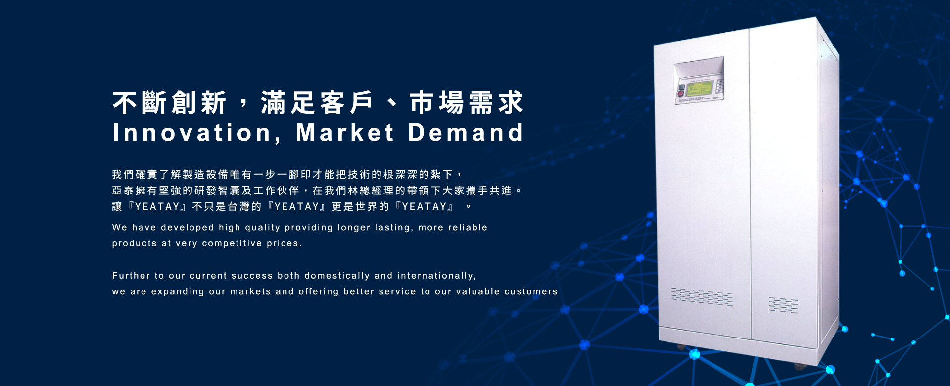 『YEATAY 亞泰』自民國74年創立,原設廠於新北市永和區,中間數次因市場需要及業務量增加搬遷擴建廠房。於民國87年遷至現在位於新店寶中路廠址。